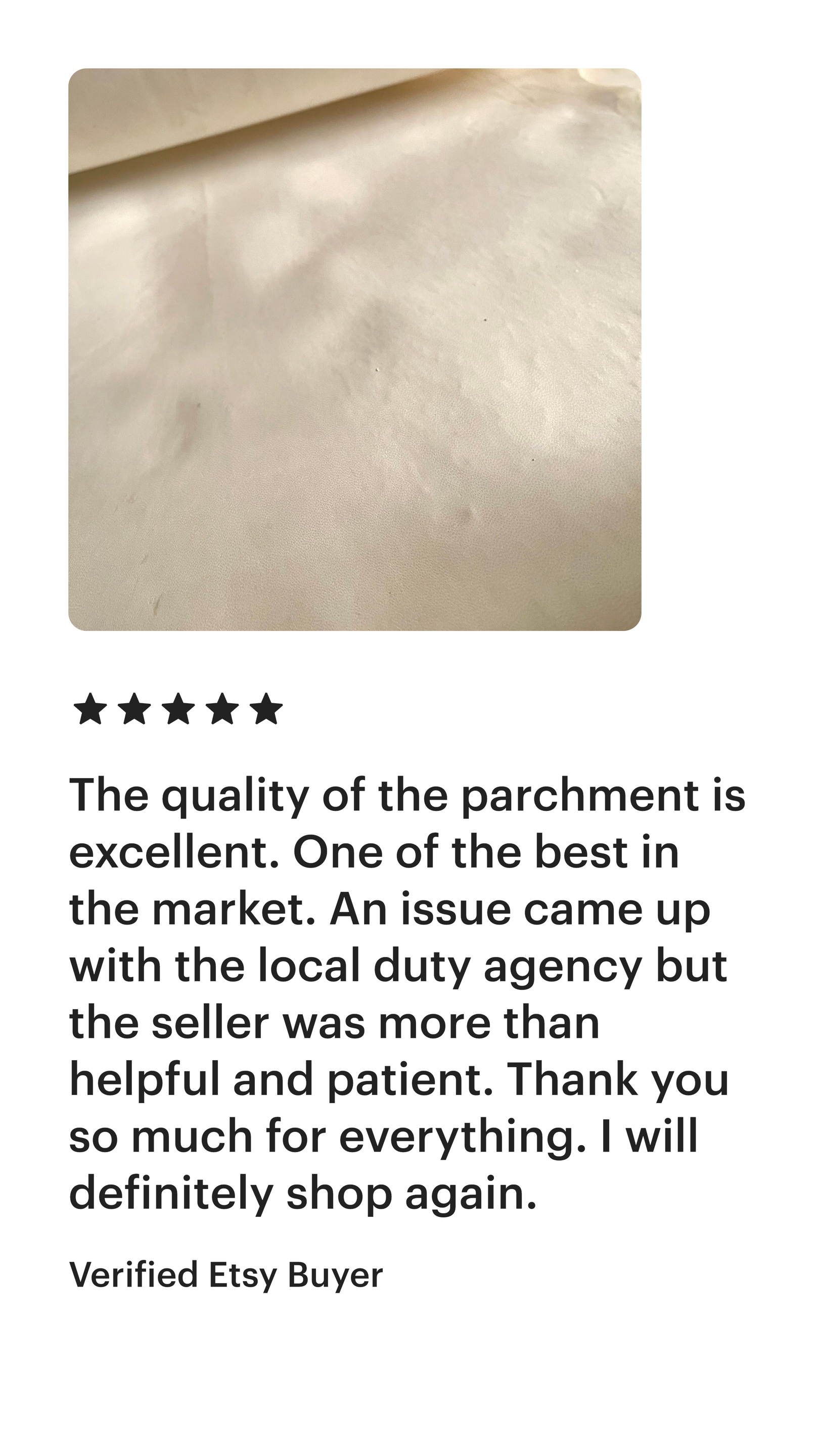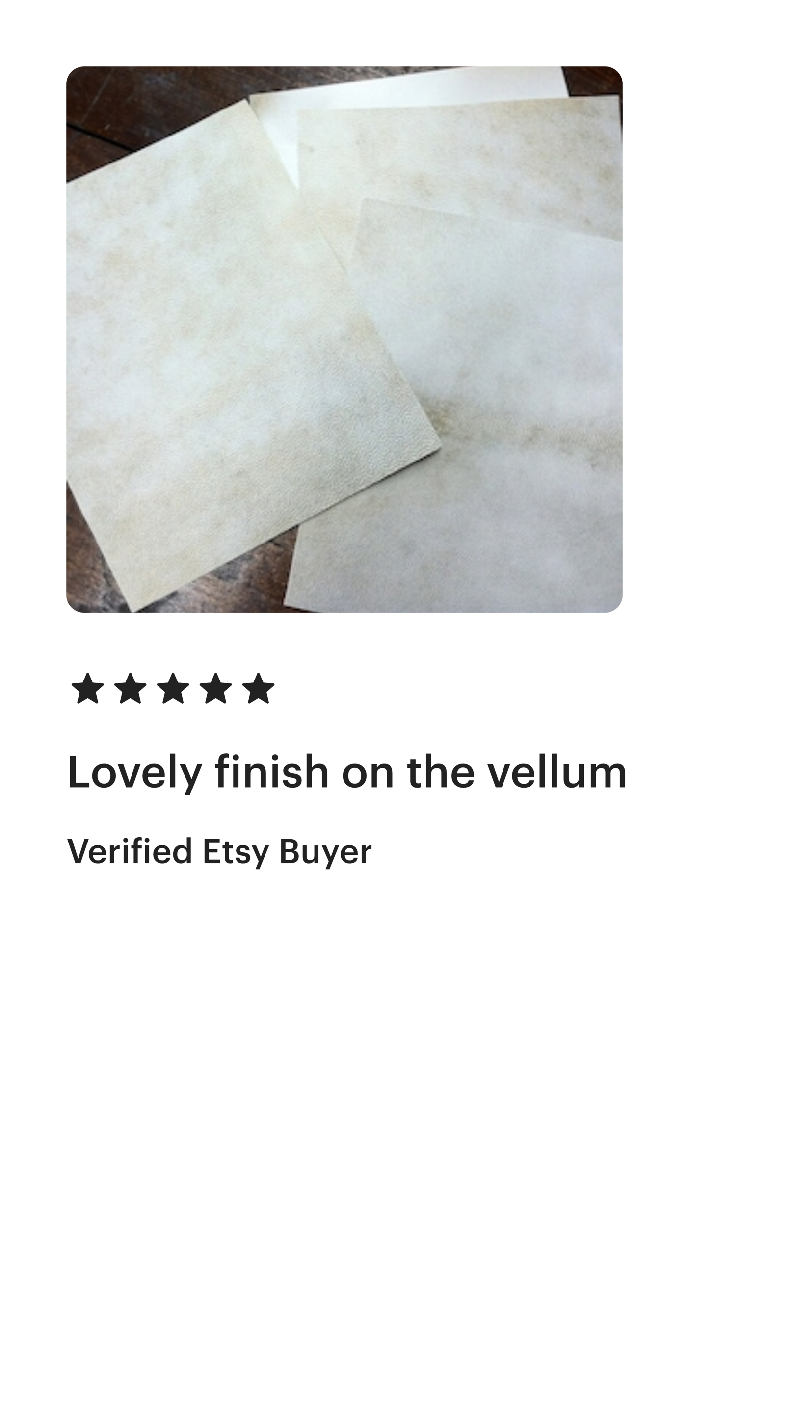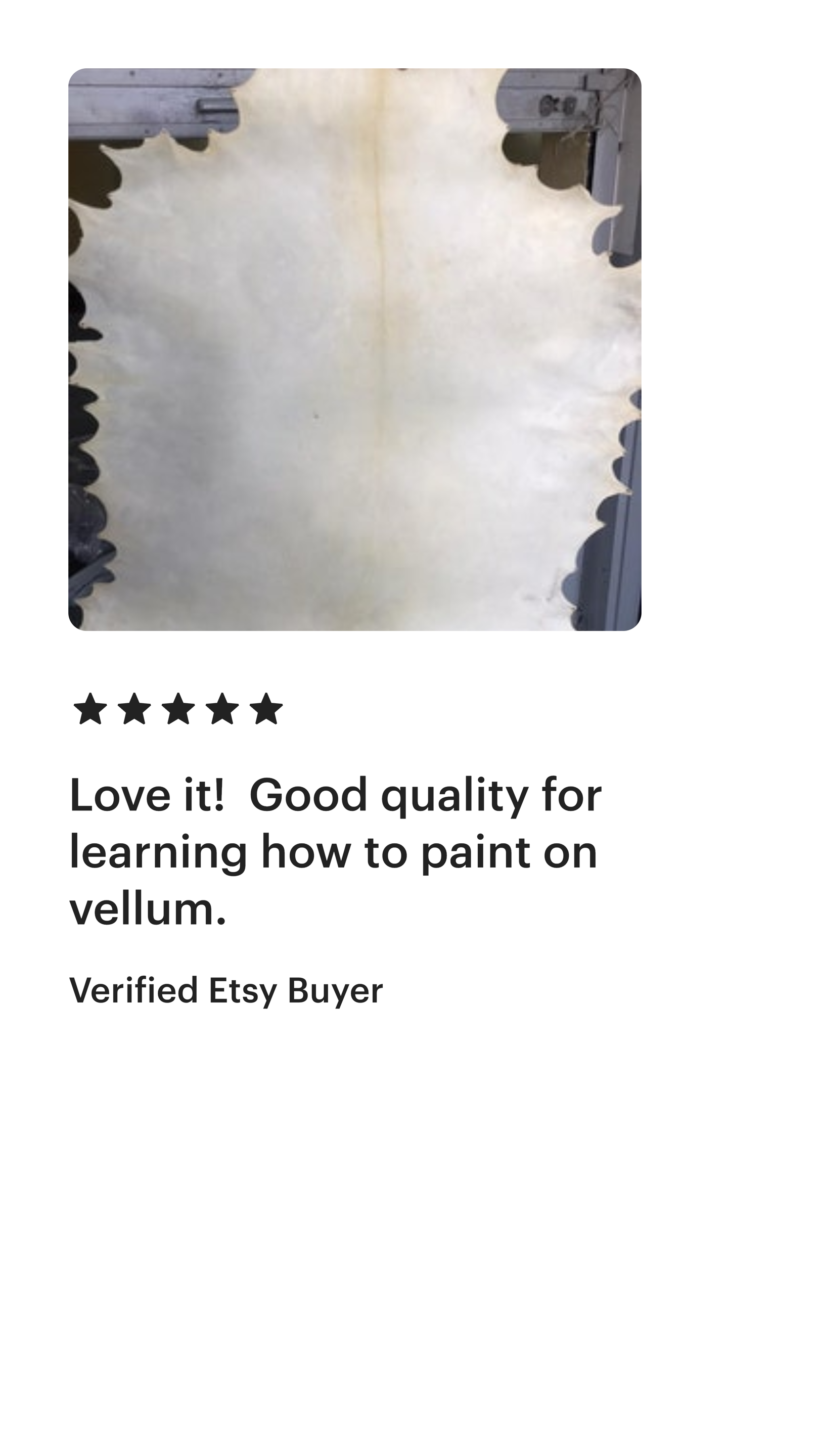 "Check out the great review left by our happy customers on Etsy. They picked us as the best place to get vellum for their artistic choices!"
